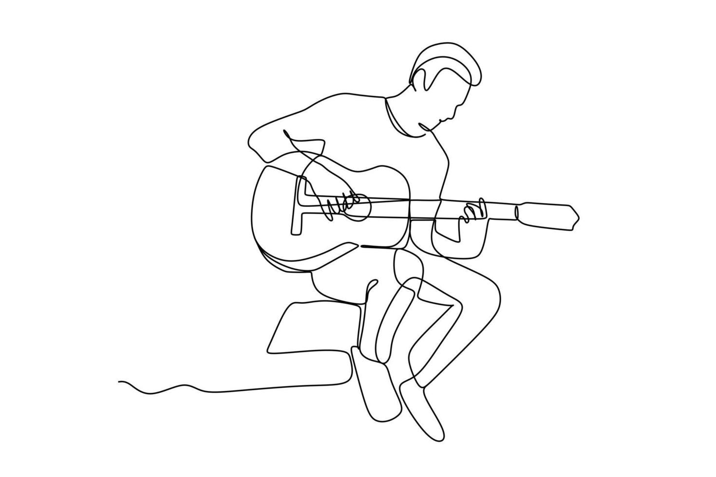 Continuous Line Drawing Of A Male Sitting Guitarist Playing Guitar Dynamic Musician Artist Performance Concept Single Line Graphic Draw Design Vector Illustration 5844198 Vector Art At Vecteezy